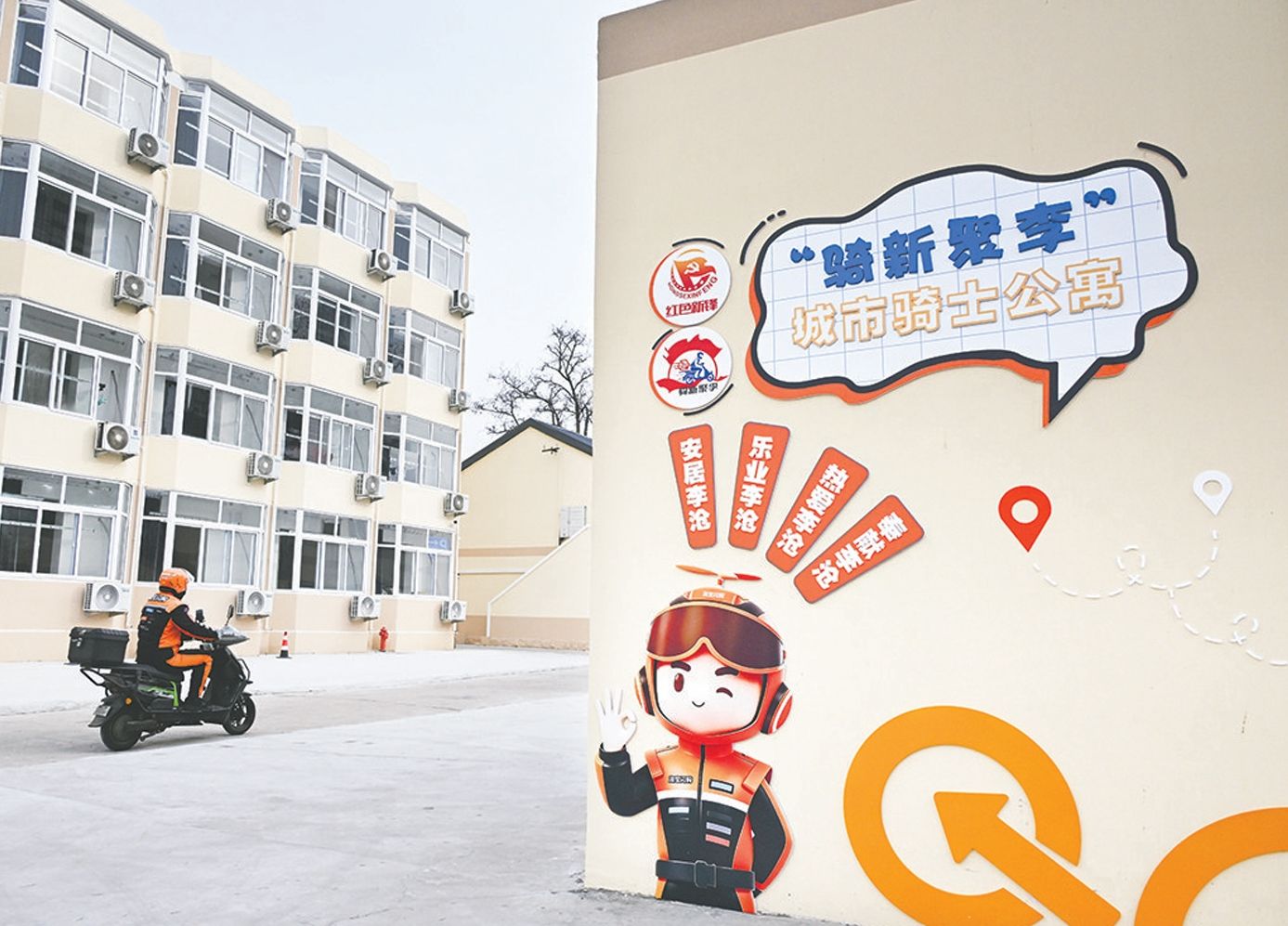 结束一天近10小时的奔波,晚上9时30分,外卖小哥滕后峰骑着电动车熟练地拐进位于李沧区汾阳路上的骑手公寓。“回来了哥?今天冷,多穿点。”前台的问候让他脚步顿了顿,笑着点了点头。这个有人等候、有人关心的暖心细节,在他搬进这处骑手公寓前,已是许久没有体验过了。对滕后峰而言,这座公寓不仅是一个住处,更是他在青岛从“跑单”到“安家”的温暖起点。2025年,青岛启动“骑手安居工程”建设,打造多处爱心骑手公寓,形成服务功能完善的微型社区,为超4万名骑手生活提供便利。